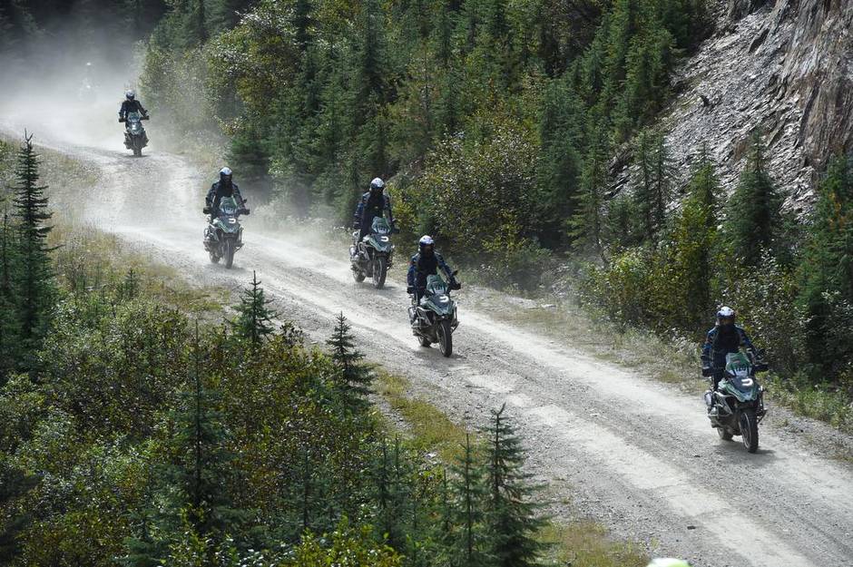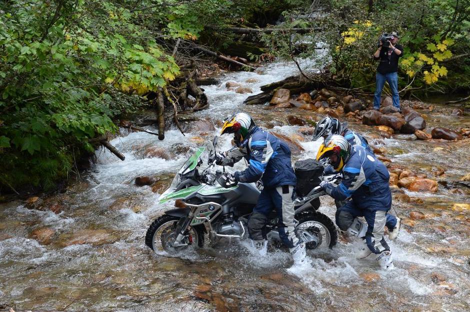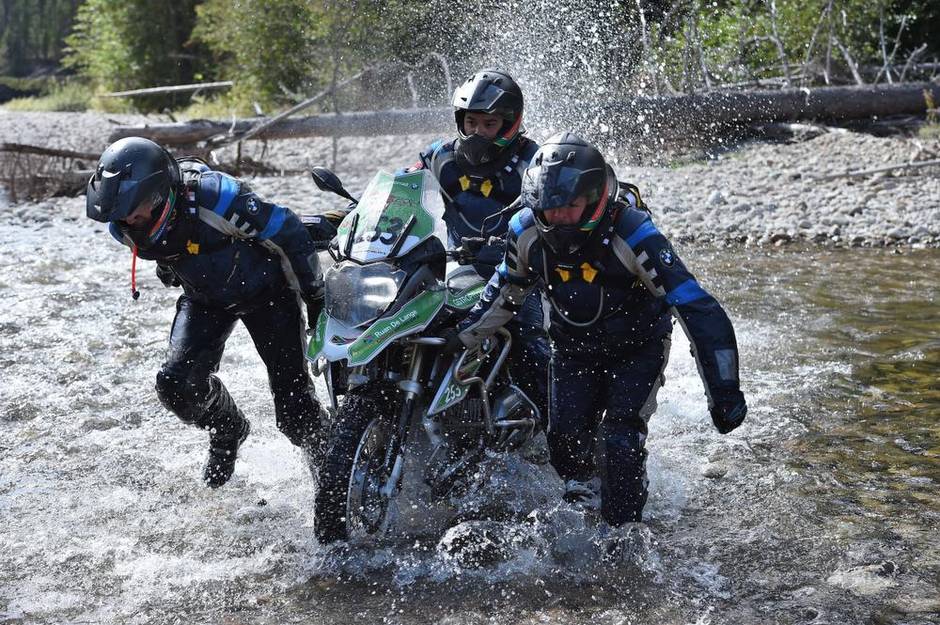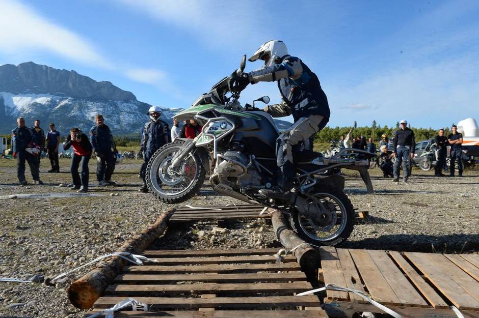 Competitors travelled 400 kilometres between Balfour, and Fort Steele B.C., including three special stages. In first special stage, 10 kilometres up a forestry service road, a team members walked three BMW R 1200 GS bikes with the engines running over a wall of boulders that blocked the road. Special stage 2, dubbed the Maryland Trial, was a time trial on a twisting sandy path with rocks, holes and trees. The third stage, on gravel with the ABS switched to Enduro Pro, required each team member to stop the front wheel in a designated area after riding as quickly as they dared.