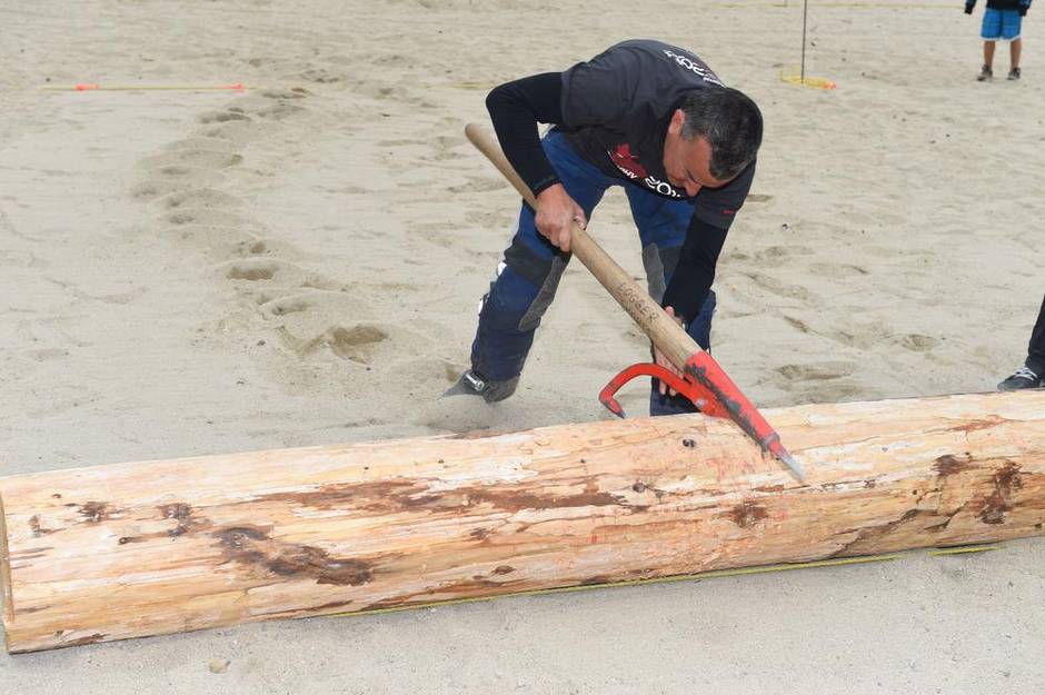 Riders took a few tumbles as they followed a loose-gravel rail bed for the 75-kilometre trip from Christina Lake, B.C., to Castlegar. The first leg went along the rail bed of the former Columbia and Western Railway track. At one stage, team members had to push their bikes down and up a tight, rocky path, while they were timed. After a dash to Nelson, B.C., the teams participated in a logging competition. Team Canada won the cross-cut sawing challenge, their only win of the event. Marc-André Octeau, who qualified for Team Canada in 2010 but dropped out because his wife was about to give birth, and who was injured in the early stages of the South American GS Trophy, was flown in for the dinner and final three days of this event as a special guest.