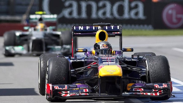 Red Bull driver Sebastian Vettel of Germany celebrates after winning the Canadian Grand Prix in Montreal, Sunday, June 9, 2013.Graham Hughes/The Canadian Press