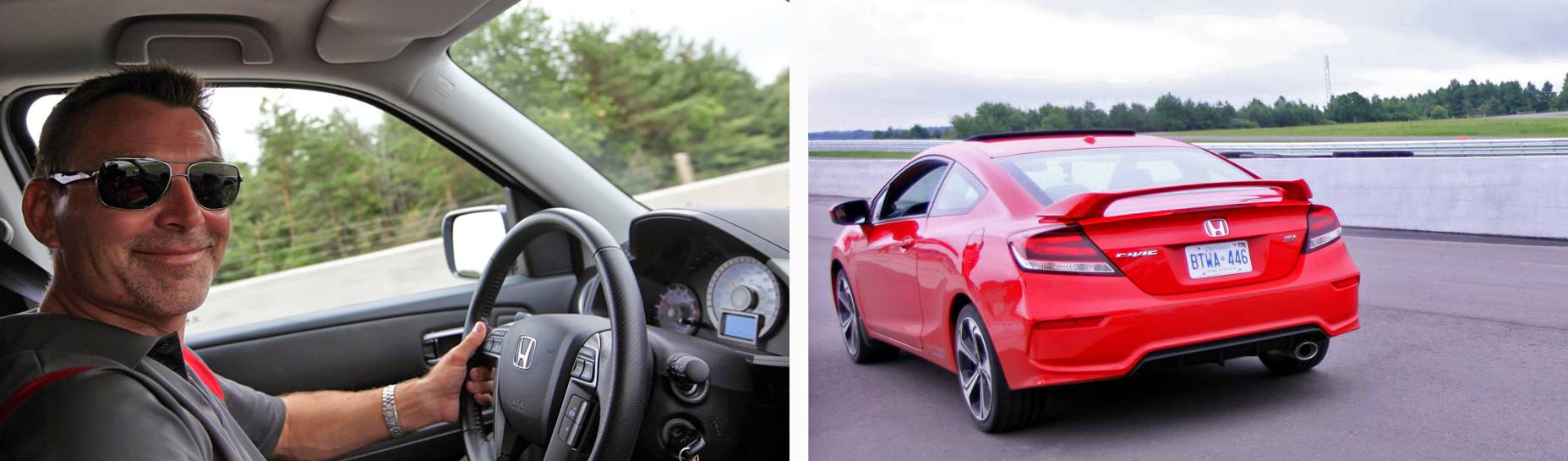 For the final session of the day, we got to test drive the souped-up Honda Civic Coupe Si with racing instructor Jeff Boyce. Again, because of my – let’s call it ‘manual deficiency’ – I rode shotgun. We whipped around the course at a white-knuckle pace of 120 km/h. It may not sound all that fast, but given how small the course is, and how tight the turns can be, it felt like we were flying. There’s something thrilling about tearing around the track in an “everyday” car. Your brain says “no, this isn’t right” but your heart says “Let’s keep doing it!” Boyce’s skill was impressive – dodging pylons while explaining the art of driving standard, and instructing the drivers behind through the walkie talkie in his left hand.