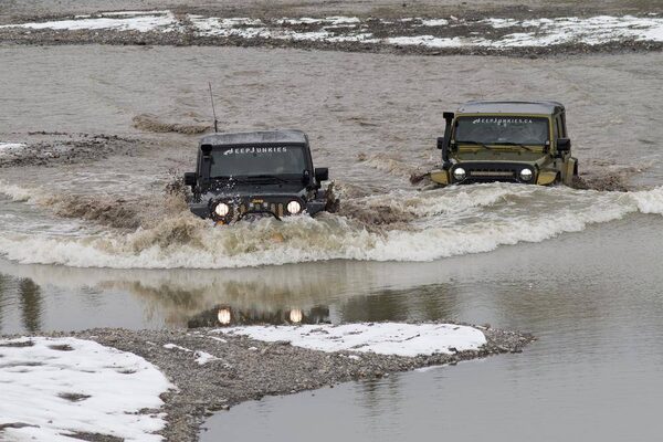 Because they can ... Dickson and Krakowski take their Jeeps through water in an abandoned gravel pit.Grant Black/The Globe and Mail