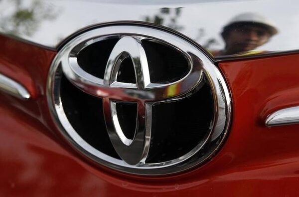 A worker is reflected next to the emblem of a Toyota Vios sedan at a stockyard of the Toyota Philippines manufacturing plant in Sta Rosa, Laguna, south of Manila August 11, 2014.ERIK DE CASTRO/Reuters