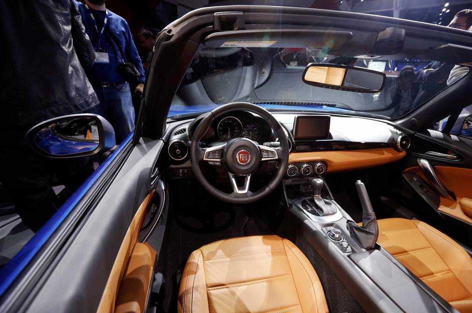 The Fiat’s engine is a 1.4-litre turbocharged four-cylinder that puts out 160 horsepower and 184 lb-ft of torque on the base Classica and Lusso models. Horsepower jumps to 165 on the Abarth. That’s more power and more torque than the MX-5, which produces 155 horses and 148 lb-ft of torque. The turbocharged Fiat will deliver all its torque lower in the rev range, which would give it a different character behind the wheel. A six-speed manual transmission is standard.