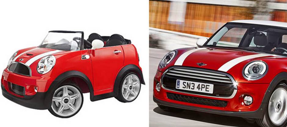 Avigo Mini Cooper Car Ride-On: $299.99, 12V battery. Features chrome accent trim, horn and engine sounds.