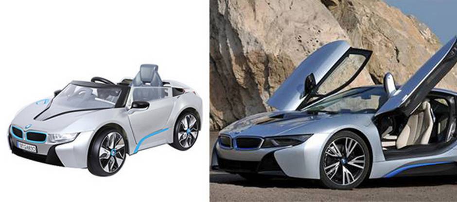 Avigo BMW i8 Ride-On: $219.99, 6V battery. Features an MP3 connector and speakers.