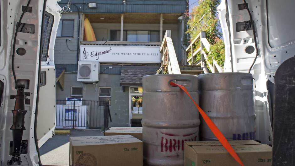 It’s a sunny Thursday and, with the prospect of a thirsty weekend on the horizon, local liquor stores and restaurants are restocking their wares in preparation for the coming hordes. Outside of Edgemont Liquor Shoppe in North Vancouver, that means a four-way logjam between the cube van of Driftwood Brewing, the Ram ProMasters of Four Winds Brewing and Powell Street Brewing, and an all-white Mercedes-Benz Metris. This last is loaded up with kegs, bombers, six-packs and cans of beer from Bridge Brewing, and is being unloaded by its new temp: me.