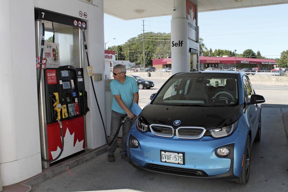 So we drove along the 401 for more than an hour, keeping up with the traffic and thinking of our deceased friend, not the car. The i3 ran well and silently until the battery drained and the little gas engine kicked in to charge the electric motor. Our range now was just more than 100 kilometres. Most drivers look for a gas station at this point, but we were running with a full tank of fuel.