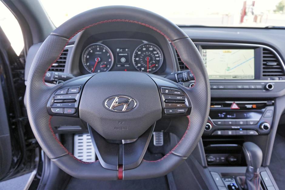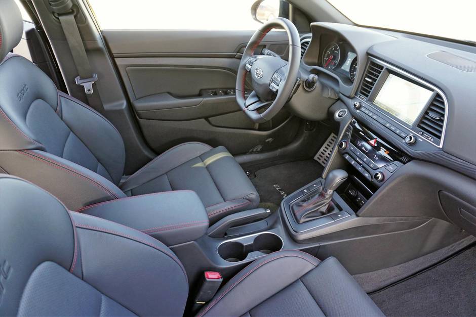 Perhaps the most cogent evidence of Hyundai’s serious intent is the unique-to-Sport multi-link rear suspension; all other Elantras employ a semi-independent torsion-beam arrangement favoured by corporate bean counters. Sport-specific suspension calibrations are matched with larger front brake rotors, a slightly quicker steering ratio, and unique 18-inch wheels wrapped in 225/40R18 tires.