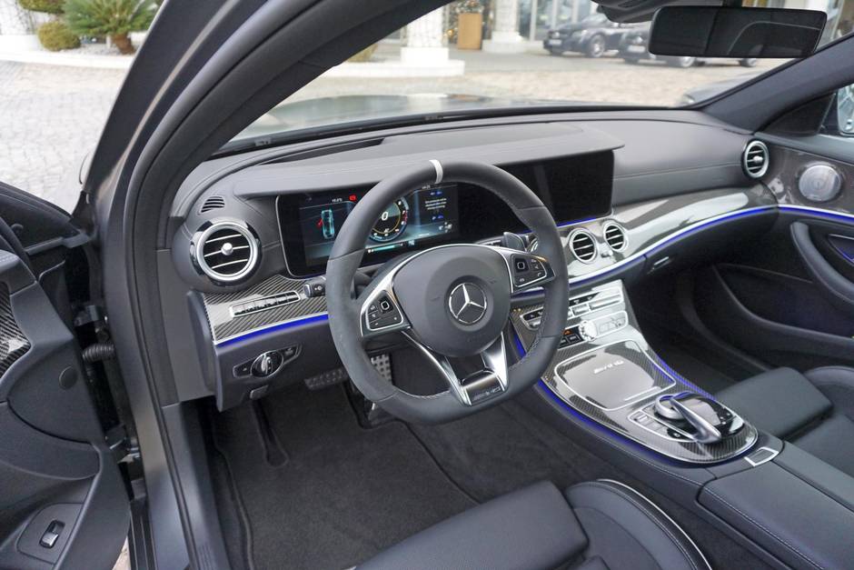 In 2014, the E-Class became the first AMG passenger car to offer all-wheel drive. With no other differences, the enhanced traction alone slashed a full half-second off the 0-100-km/h time. But, of course, in a 550-plus-hp car, AWD was also a safety fuse against tricky surfaces and/or ham-footed driving. How apt, it seemed, that the E-Class, arguably the most sedate-and-sensible member of the Mercedes family, would be the one to debut AWD on its AMG version.