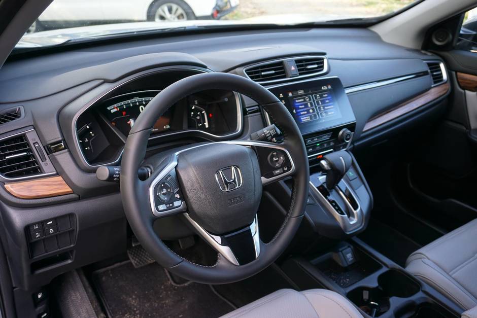 Performance: U.S. buyers get a carryover 2.4-litre base engine, but for Canada all CR-Vs use a 190-hp version of the 1.5-litre turbo introduced last year on the Civic. Teamed with a continuously variable transmission, it propels the CUV energetically, if somewhat raucously when leaned on hard. Driven more sedately, the CR-V is commendably quiet. As you’d expect from a chassis shared with Civic, the handling is lively and engaging, yet the ride is absorbent (though we did notice some lateral head-tossing motions on uneven country roads).