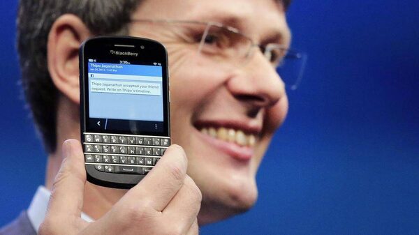 Thorsten Heins, CEO of Research in Motion, introduces the BlackBerry 10, Wednesday, Jan. 30, 2013 in New York.Mark Lennihan/The Associated Press
