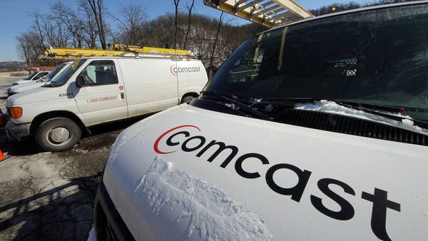This Feb. 13, 2012 photo, shows Comcast service vehicles parked at a Comcast facility in Pittsburgh.The Associated Press