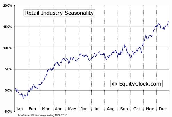 And now a curiosity! Seasonal studies show that the best day to take seasonal profits in the retail merchandising sector is on Black Friday. Traders take profits on news. Preferred strategy is to hold retail merchandiser stocks and related ETFs for now, but be prepared to take profits on Black Friday.