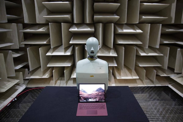 A Microsoft Surface laptop sits in a soundproof chamber used for development of the device's speakers. Investing in U.S. technology companies can help Canadians diversify their portfolios.Mike Kane/Bloomberg