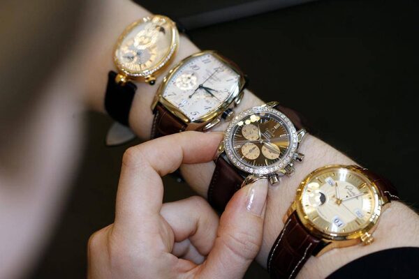 A saleswoman displays brands belonging to the Swiss Swatch Group in this file photo.SIGGI BUCHER/Reuters