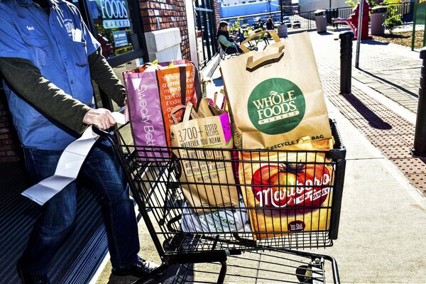 A Whole Foods employee pushes a cart out of the store, in New York, Oct. 30, 2015.DOLLY FAIBYSHEV/The New York Times