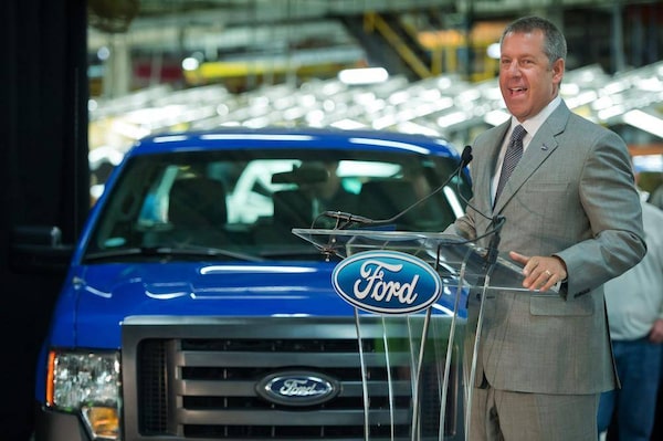 Joe Hinrichs, Ford Motor Co.’s president of the Americas, announces May 2, 2013 that the company is adding 2,000 workers to its Claycomo, Mo., plant, where the the F-150 pickup is made, because of surging U.S. demand for pickup trucks.DAVID EULITT/The Associated Press