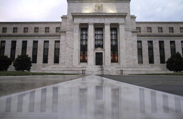 The facade of the U.S. Federal Reserve building is reflected on wet marble during the early morning hours in Washington, July 31, 2013.JONATHAN ERNST/Reuters