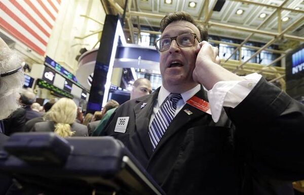 FILE - In this July 16, 2014 file photo, trader Benedict Willis uses his moblie phone as he works on the floor of the New York Stock Exchange. Stocks are pricier, tensions between Russia and the West are mounting, and Israel has rolled into Gaza to stop a deadly air war. And yet investors shrug it all off and keep pushing the market higher. (AP Photo/Richard Drew, File)The Associated Press