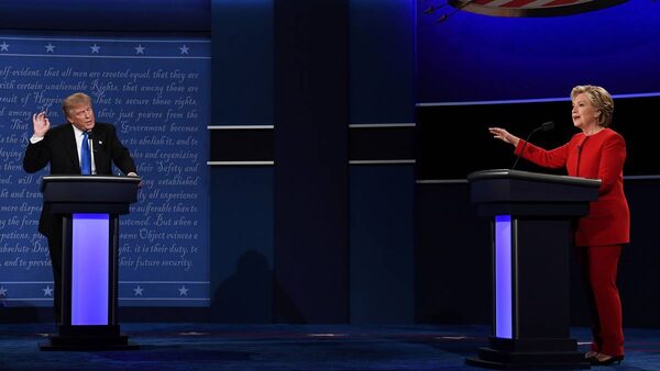 Donald Trump and Hillary Clinton spar during the first presidential debate at Hofstra University in Hempstead, New York on September 26, 2016.SAMADJEWEL SAMAD/AFP / Getty Images
