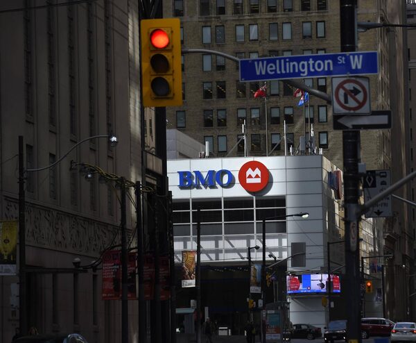 The Bank of Montreal is seen past signs and poles in the King St. West and Bay St. area on March 30/Fred Lum/The Globe and Mail