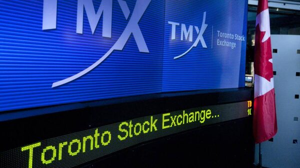 TMX Group Inc. signage is displayed on a screen in the broadcast center of the Toronto Stock Exchange (TSX) in Toronto, Ontario, Canada, on Monday, Oct. 31, 2011.Bloomberg