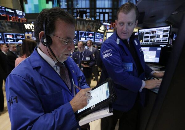 Trader Sal Suarino, left, and specialist Edward Zelles work on the floor of the New York Stock Exchange Wednesday, Jan. 8, 2014.Richard Drew/The Associated Press
