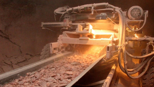 Potash drilled from the earth is carried up to the surface on a conveyor belt.DAVID STOBBE