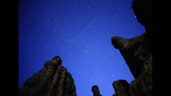 A meteor streaks though the night sky over the village of Kuklici, known for its hundreds of naturally formed stones which resemble human beings, near Kratovo, August 13, 2011.Ognen Teofilovski/REUTERS