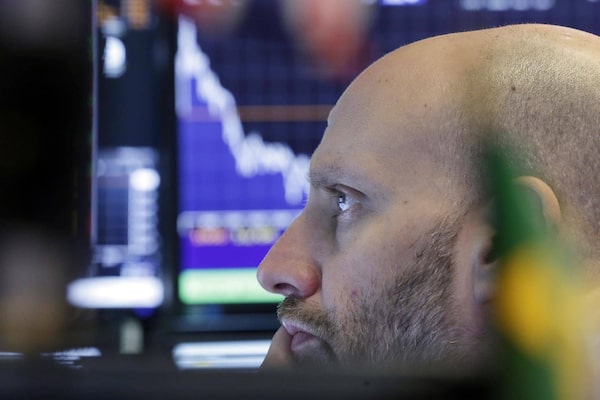 Specialist Meric Greenbaum studies his screens on the floor of the New York Stock Exchange.Richard Drew/The Associated Press