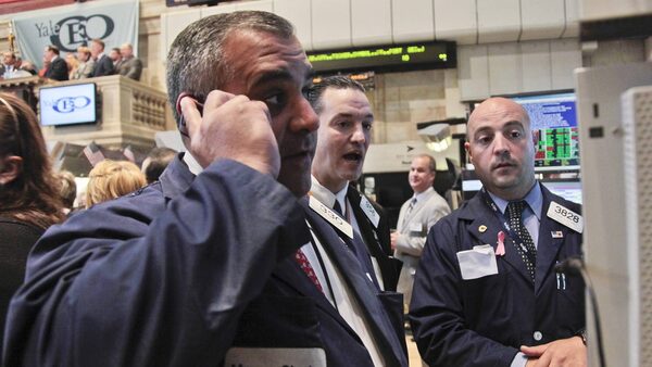 Morgan Stanley's Mario Innella, left, Wellington Shields' Theodore Nelson, center, and Knight Capital's Frank Babino, right, work on the floor of the New York Stock Exchange on Wednesday, June 6, 2012. An early charge on Wall Street put the Dow Jones industrial average on track for a second day of gains, up 154 points at 12,242 in the first hour of trading.The Associated Press