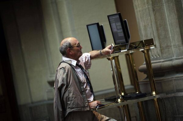 A trader looks at computer screens at the Madrid bourse.SUSANA VERA/Reuters