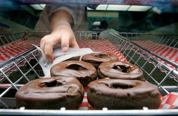 A Tim Hortons employee grabs a doughnut for a customer.© JP Moczulski / Reuters/Reuters