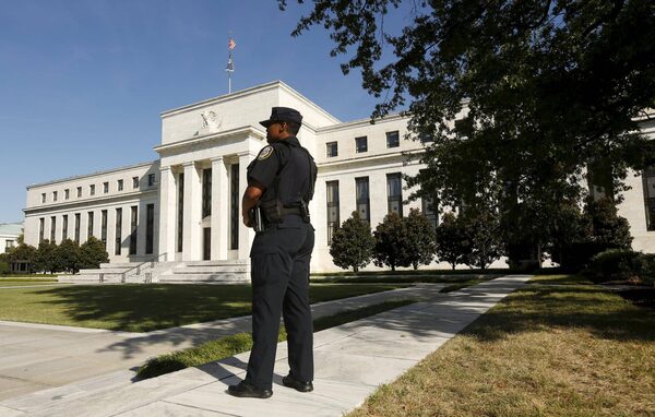 A Federal Reserve police officer keeps watch while posted outside the Federal Reserve headquarters in Washington, Sept. 16.Kevin Lamarque/Reuters