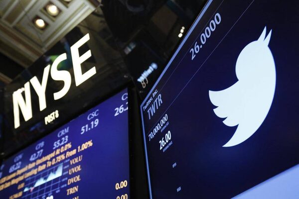 The Twitter logo is seen on the floor of the New York Stock Exchange in New York in this file photo taken November 7, 2013.LUCAS JACKSON/Reuters