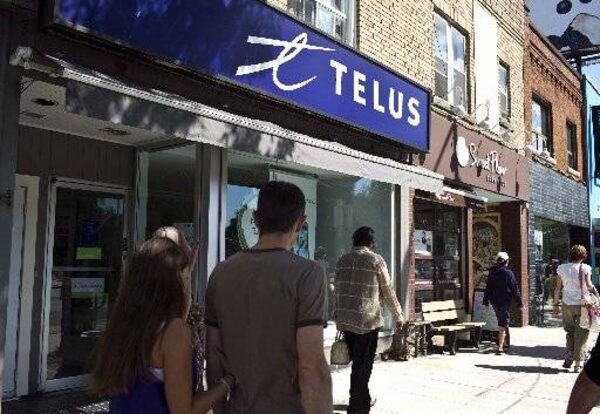 Pedestrians walk by a Telus store in Toronto, Aug. 15, 2013.Galit Rodan/The Canadian Press