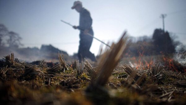 A man burns a rice field in preparation for planting near Fukushima, northern Japan April 5, 2011. The Japanese earthquake in March was just one of many global events that threw markets into a tailspin.