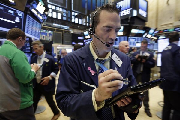 Trader Gregory Rowe works on the floor of the New York Stock Exchange, Wednesday, July 27.Richard Drew/The Associated Press