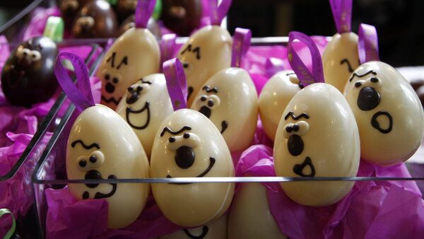Chocolate Easter eggs made by Belgian chocolate maker Dominique Persoone are pictured at his Chocolate-Line Shop in Antwerp March 30, 2010.THIERRY ROGE