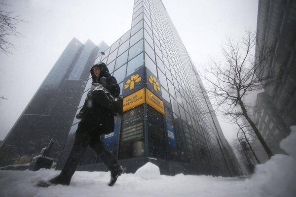 A pedestrian walks past the head offices of Laurentian Bank in Montreal, March 19, 2013.CHRISTINNE MUSCHI/Reuters