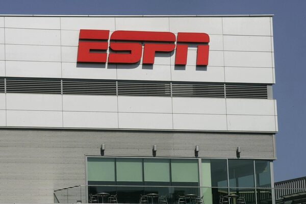The ESPN logo is displayed outside L.A. Live, which houses the ESPNZone, in Los Angeles on Tuesday, Aug. 31, 2010.Jonathan Alcorn/Bloomberg
