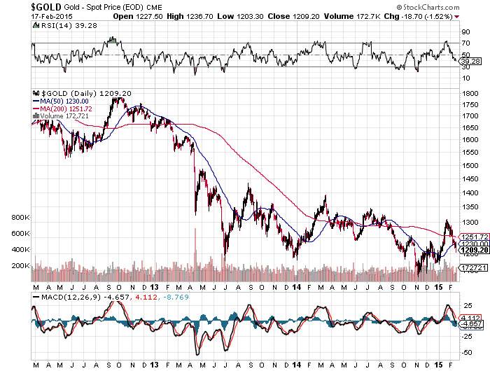 The three-year chart indicates that the stock tracked gold higher in late 2014 and then jumped on the announcement of the AuRico Gold deal in January of 2015. The shares hit resistance at $0.23 and have pulled back to support along the 200-day moving average. Presently the MACD and the RSI are generating sell signals that need to be respected.