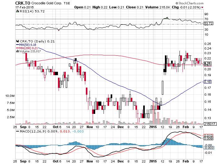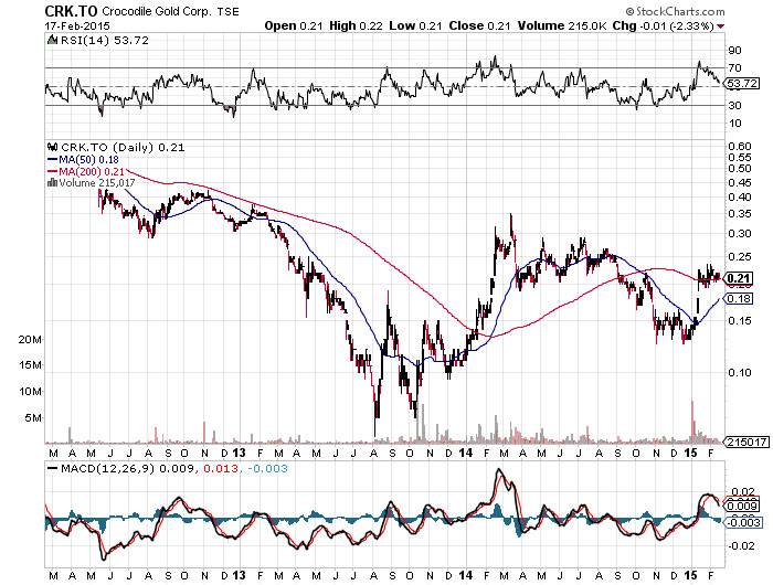 Crocodile Gold Corp. (CRK) is a Canadian gold mining and exploration company with three operating mines in Australia. The company expects to produce between 205,000 and 220,000 ounces of gold in 2015 with all in sustainable cash costs in a range of $1,020.00 and $1,100.00 an ounce. When you consider the price of gold you can see what is putting a damper on the stock and indeed the entire sector. The market cap issue you are concerned with is mostly driven by the fact that the company has to spread its earnings over 700.4 million shares on a fully diluted basis. Its a classic example of having way more bagels than the schmear can cover.