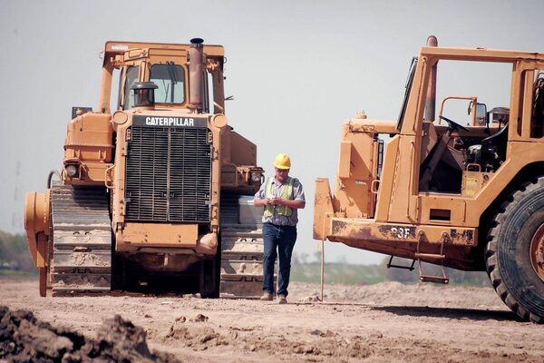 A heavy equipment operator walks between Caterpillar earth moving equipment at a road construction site on April 24, 2006 near Joliet, Ill.Scott Olson