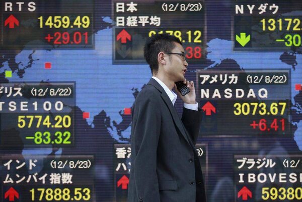 An electronic board displays global market indexes outside a brokerage in Tokyo, Aug. 23, 2012. Foreigners purchased more than a $1-billion (U.S.) in Japanese equities last week.YURIKO NAKAO/Reuters