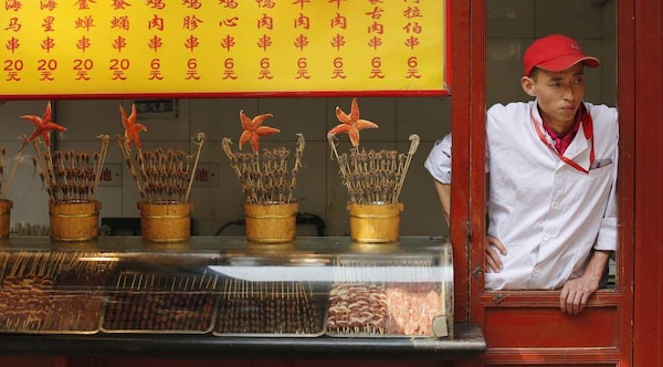 A food vendor waits for customers in Beijing May 6, 2013. Growth in China’s services sector slowed sharply in April to its lowest point since August 2011, fresh evidence of rising risks to a revival in the world’s second-largest economy.Reuters