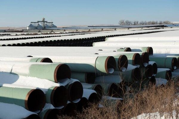 A depot used to store pipes for TransCanada Corp's Keystone XL pipeline in Gascoyne, N.D., Nov. 14, 2014.Reuters