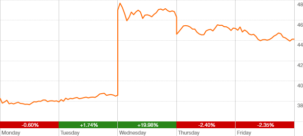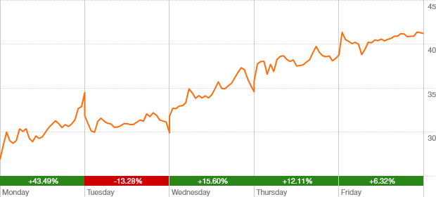 up $5.97 or 15.6% over week
