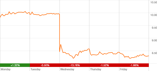 down $1.56 or 15.8% over week