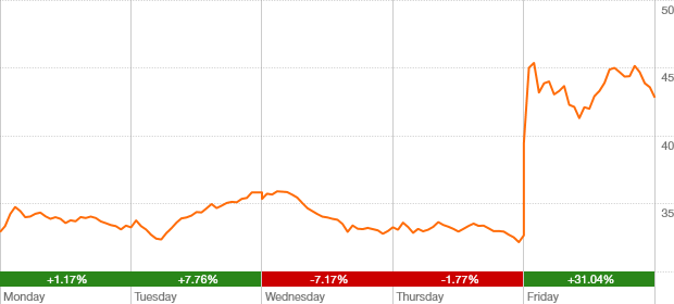 up $9.94 or 30.2% over week
